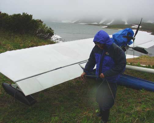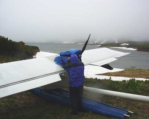 a lot of the wing and tail. Charlie now runs the plane up snow banks and